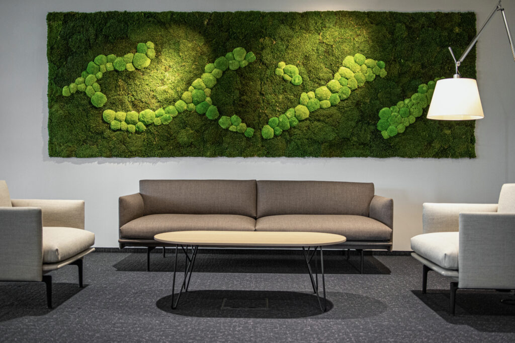 Neben der gestalterischen Eleganz überzeugen die Installationen von WildesMoos durch klare funktionale Vorteile: Moos wirkt schallabsorbierend und trägt so zur Verbesserung der Raumakustik bei. Die konservierten Moosflechten benötigen keinerlei Pflege, kein Wasser, kein Licht – und bewahren dennoch jahrelang ihre natürliche Ausstrahlung. Durch die biologische Inaktivität des konservierten Mooses ist es allergenfrei und somit auch ideal für den Einsatz in sensiblen Bereichen wie Arztpraxen, Therapiezentren oder Gesundheitsanstalten.